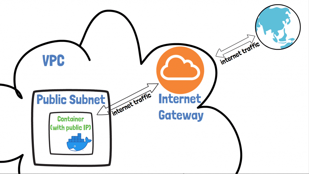 With an internet gateway attached to your subnet, your containers can make requests to the internet, but also importantly be reached from the internet too.