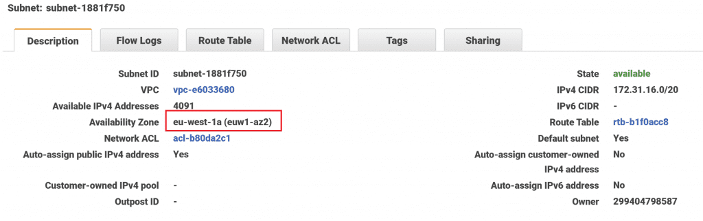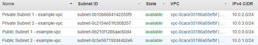 If you wanted to, you could click through on each Subnet ID to see more details. You would see that each subnet exists in a different availability zone.