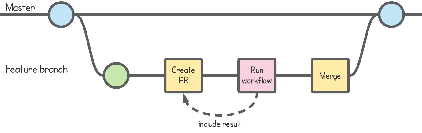 However, a typical workflow in a GitHub repository involves creating a pull request to merge a feature branch into master. Much better would be to have a workflow run trigger when the pull request is created.