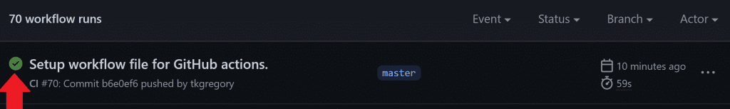 Once your workflow has completed, click Actions again and you'll see the workflow run marked as success in green.