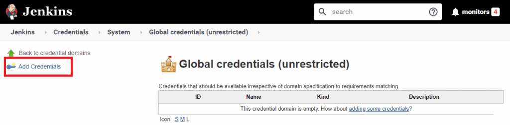 Let's add our Docker Hub credentials into Jenkins, by navigating through the somewhat long-winded following series of pages...