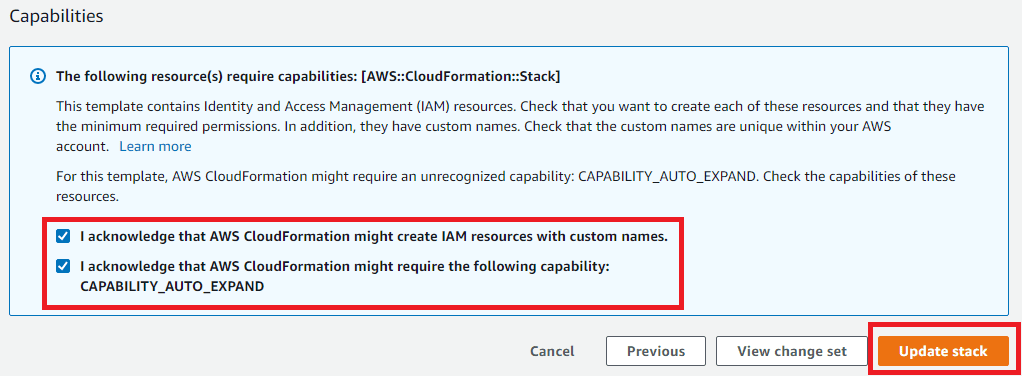 When you click this button you’ll be taken to the Quick create stack page in your own AWS account.