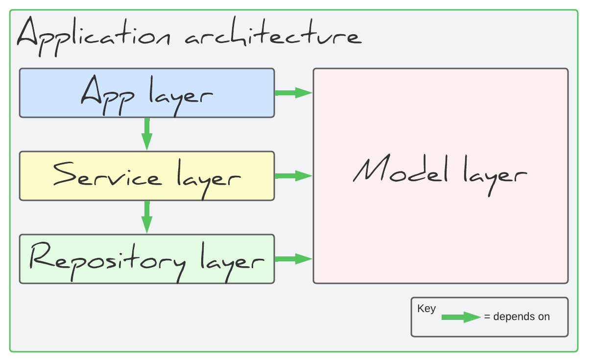 When an application has several layers as shown above, it's almost always a good idea for dependencies between layers to go in one direction only.