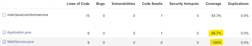 Viewing the report in a locally running SonarQube shows us the code coverage data.