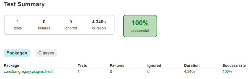 GradleRunnerin a library called gradle-test-kit to run the fileDiff task - finally, in the then section of the test we're asserting that the build output contains the expected text and that the task completed successfully