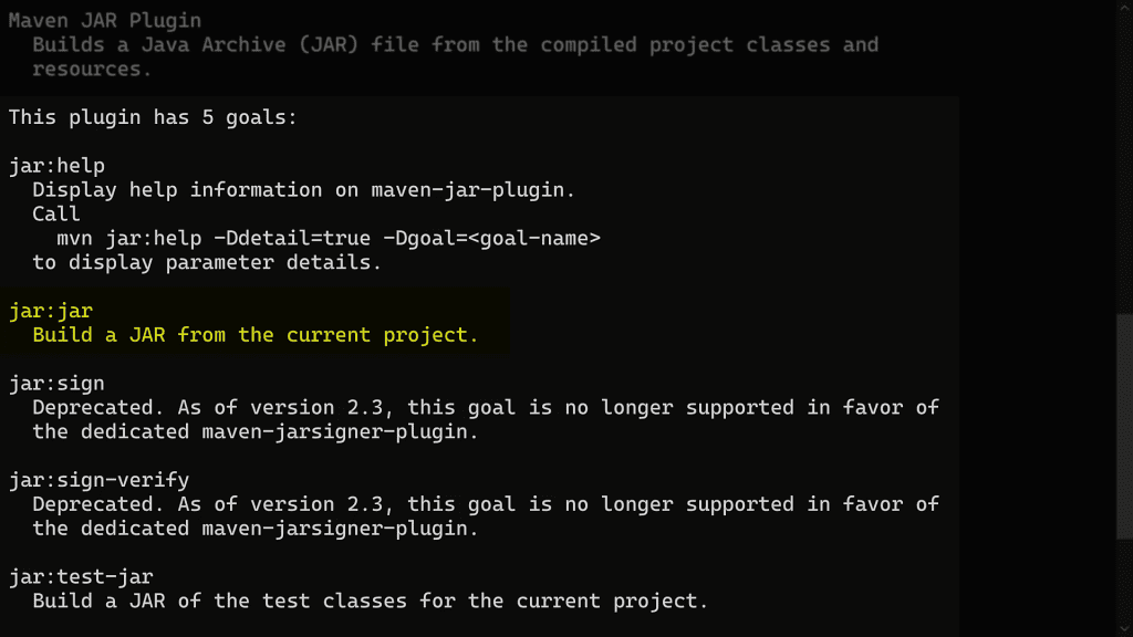 Here's the result of running mvn jar:help.