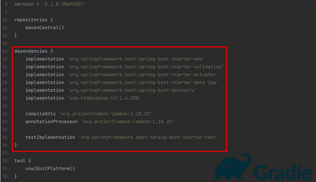But the Groovy language has been used in a way that makes the build script look more like a definition than a script.