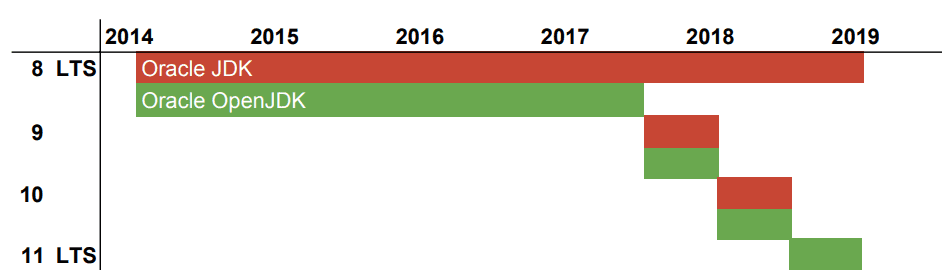 Worse still, the same rule even applies to long term support (LTS) releases of Oracle OpenJDK. Yes, if you're on version 11, when version 12 is released you have to switch over straight away.